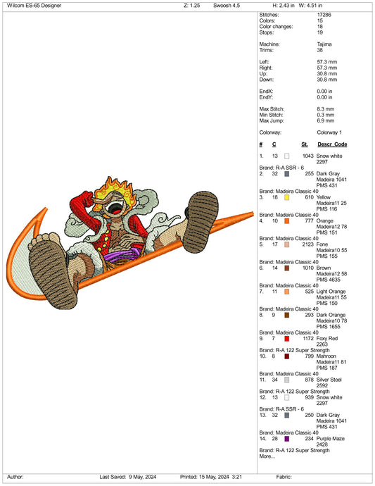 Monkey Luffy Embroidery Design Files - 3 Sizes