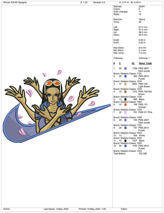 Nico Robin Swoosh Embroidery Design Files - 3 Sizes