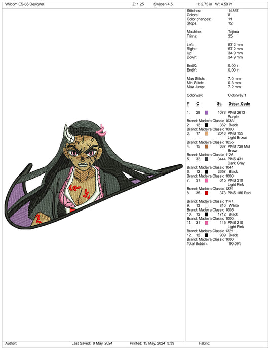 Nezuko Kamado Swoosh Embroidery Design Files - 3 Sizes