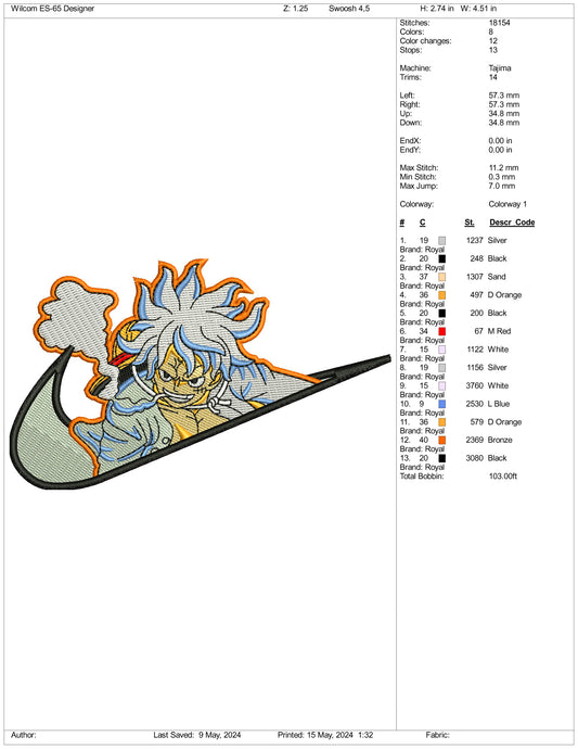 Monkey Luffy Swoosh v1 Embroidery Design Files - 3 Sizes