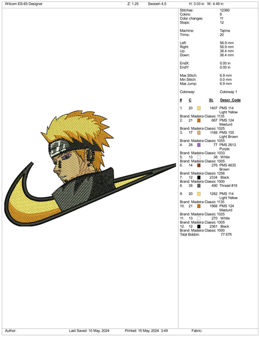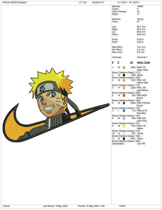 Naruto Uzumaki Swoosh v1 Embroidery Design Files - 3 Sizes