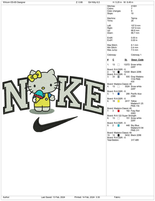 Nike Hello Kitty Embroidery Design Files - 3 Size's