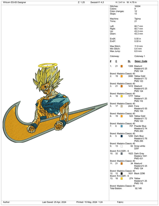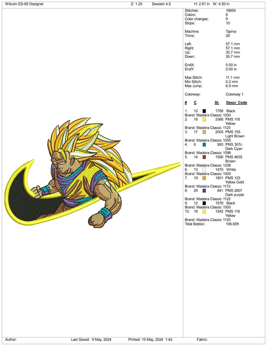 Angry Goku Swoosh Embroidery Design Files - 3 Sizes