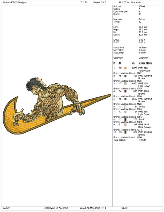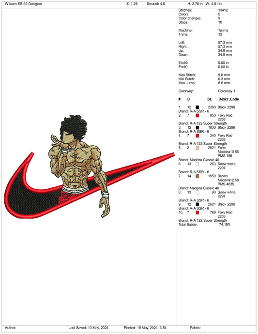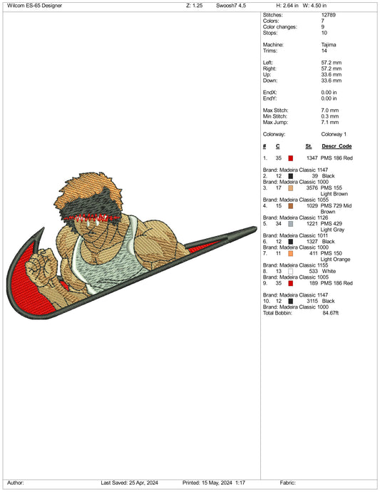 Baki Hanma Swoosh Embroidery Design Files - 3 Sizes