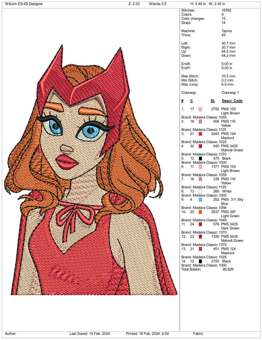Wonder Woman Cartoon Embroidery Design Files - 3 Size's