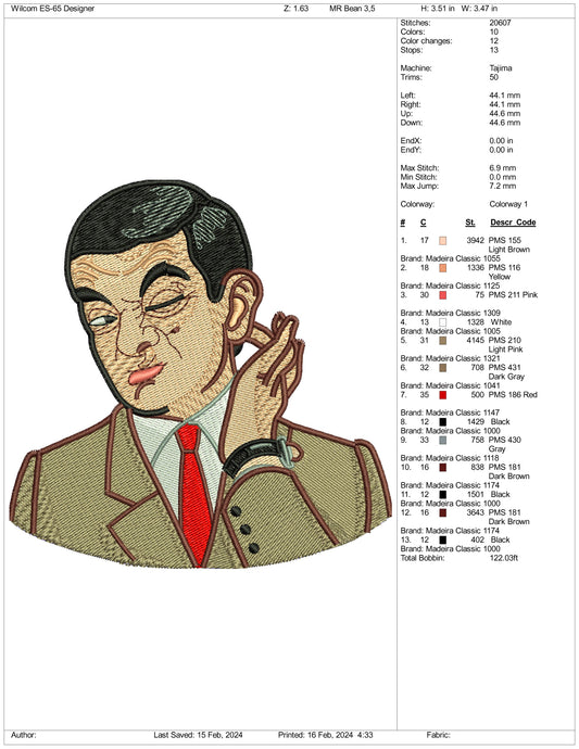 Mr Bean Embroidery Design Files - 3 Size's