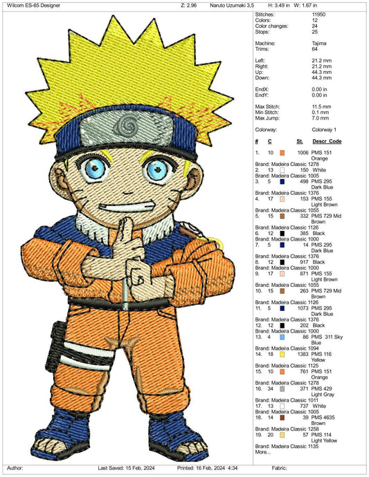 Chibi Naruto v2 Embroidery Design Files - 3 Size's
