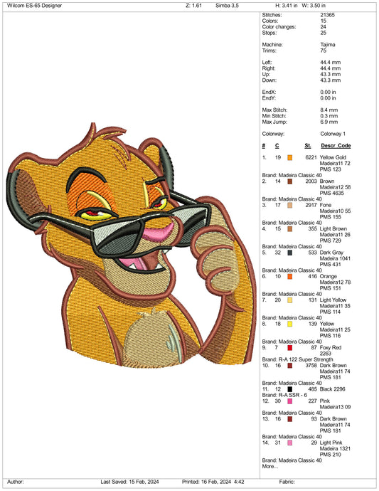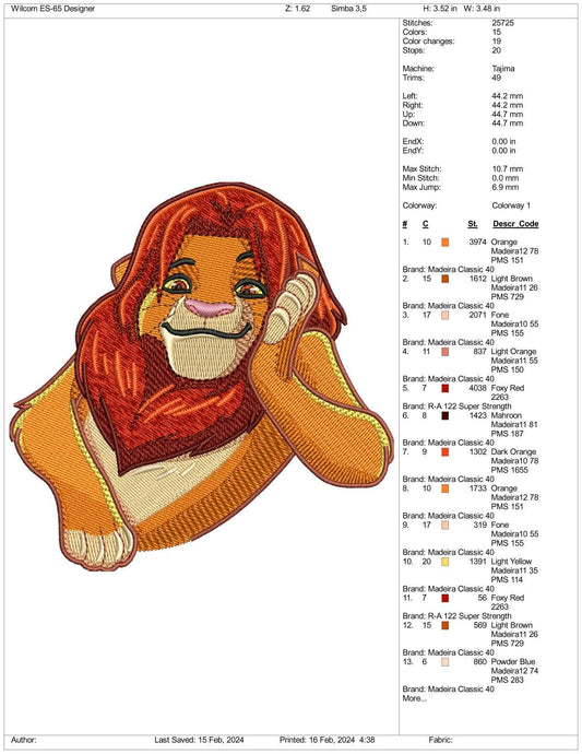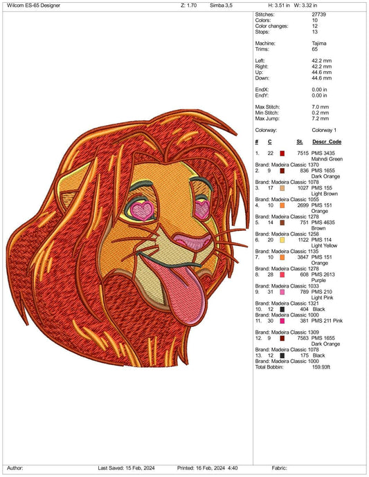 Simba Embroidery Design Files - 3 Size's