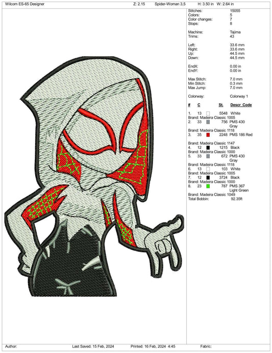 Gwen Stacey Embroidery Design Files - 3 Size's