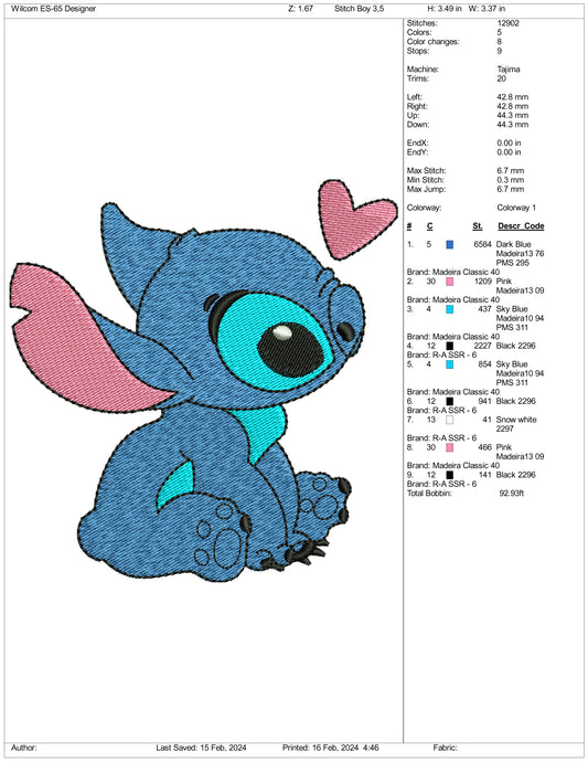 Stitch & Angel Embroidery Design Files - 3 Size's