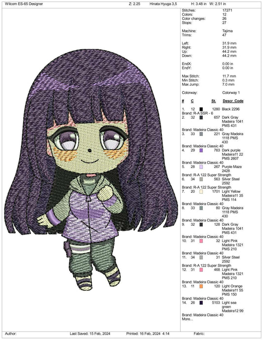 Chibi Hinata Embroidery Design Files - 3 Size's