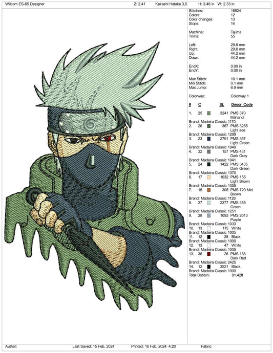 Kakashi Hatake Embroidery Design Files - 3 Size's