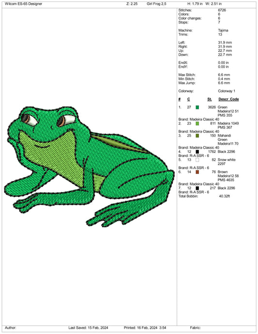 Princess Tiana Frog Embroidery Design Files - 3 Size's