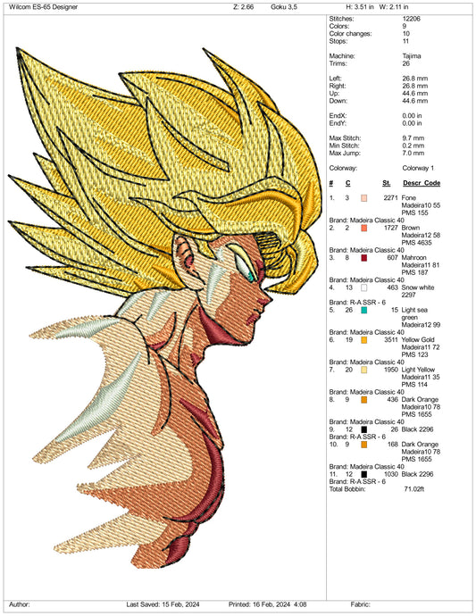 Super Saiyan Goku Embroidery Design Files - 3 Size's