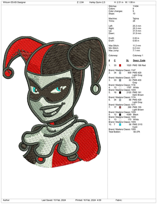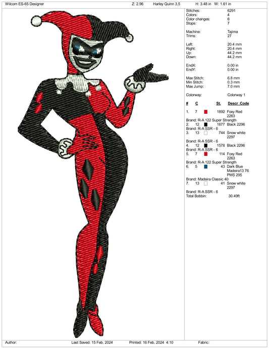 Old Harley Quinn Embroidery Design Files - 3 Size's