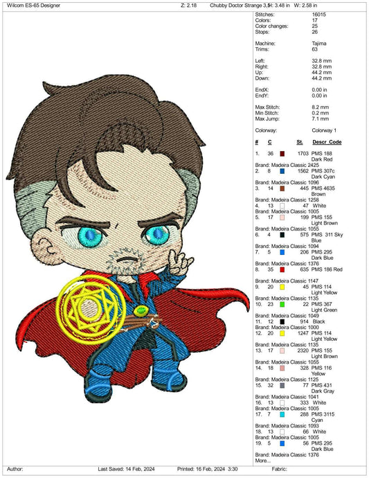 Chibi Doctor Strange Embroidery Design Files - 3 Size's