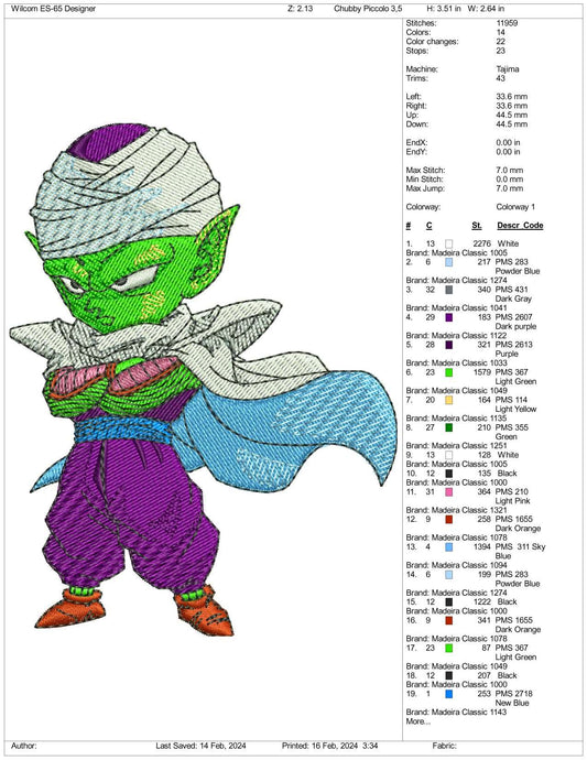 Chibi Piccolo Embroidery Design Files - 3 Size's