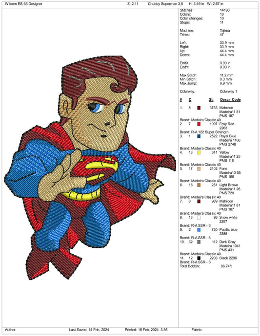 Chibi Superman Embroidery Design Files - 3 Size's