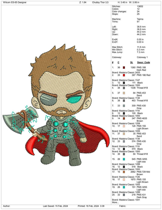 Chibi Thor Embroidery Design Files - 3 Size's