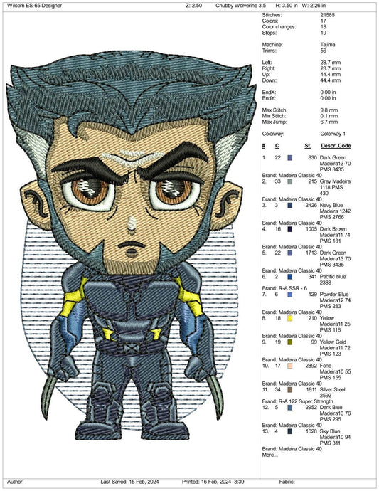 Chibi X Man Embroidery Design Files - 3 Size's