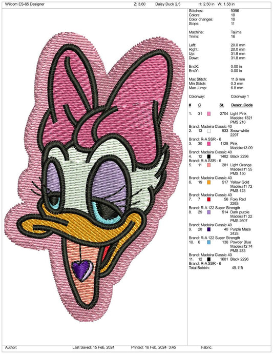 Daisy Duck Embroidery Design Files - 3 Size's