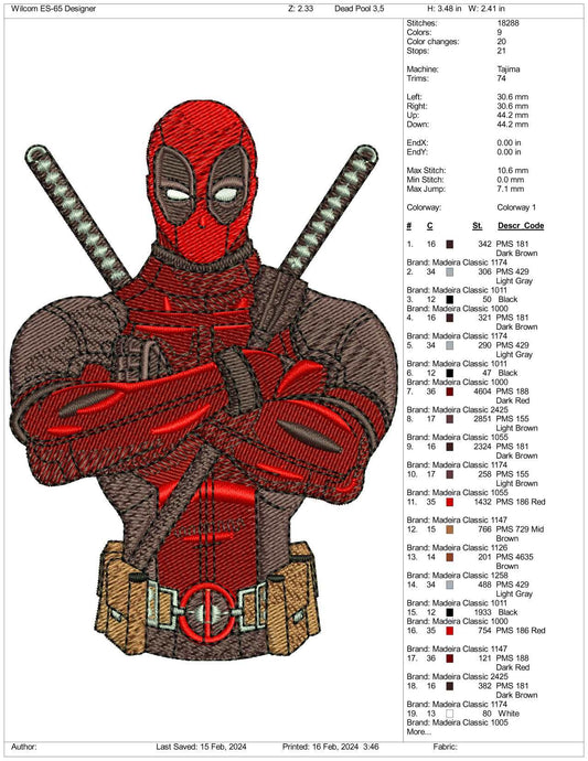 Deadpool Half Embroidery Design Files - 3 Size's