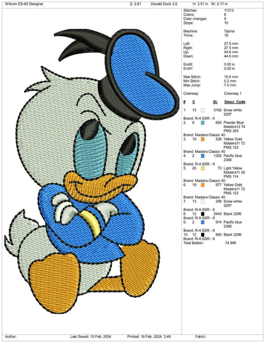 Baby Donald Duck Embroidery Design Files - 3 Size's