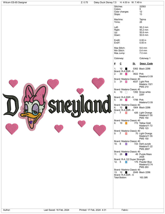 Daisy Duck Disneyland Embroidery Design Files - 3 Size's