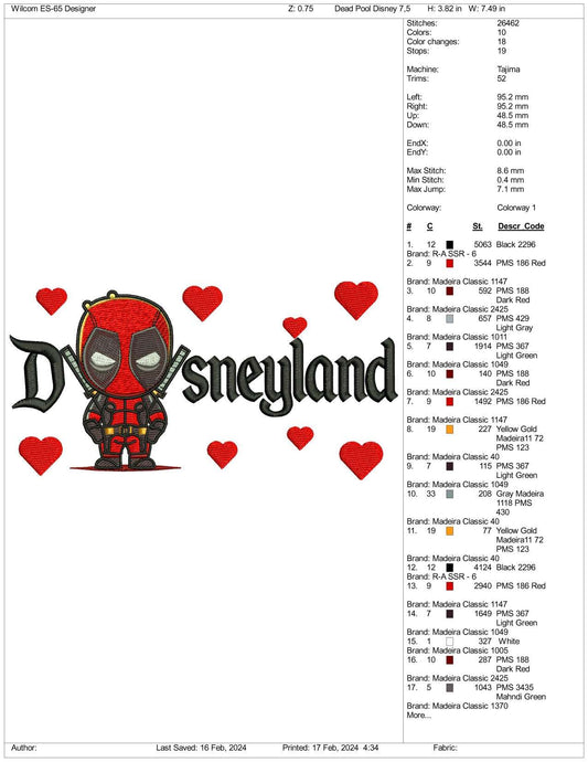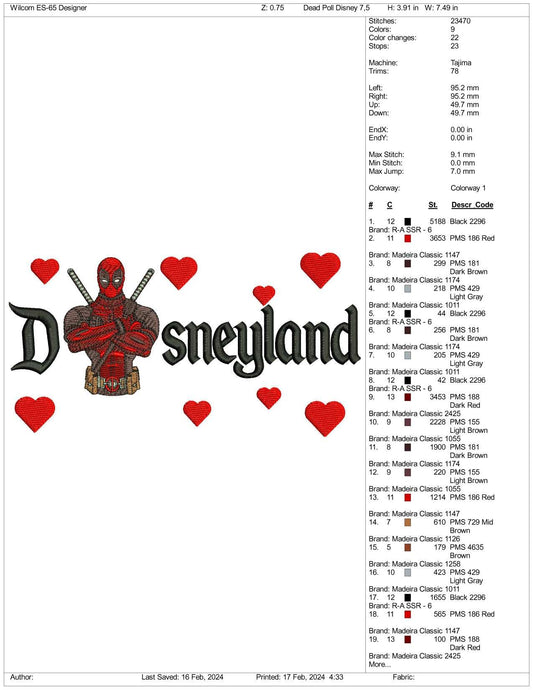 Deadpool Half Disneyland Embroidery Design Files - 3 Size's