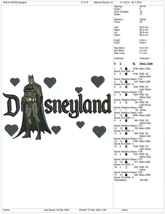 Batman Disneyland Embroidery Design Files - 3 Size's