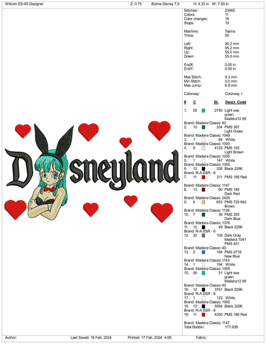 Bulma Half Disneyland Embroidery Design Files - 3 Size's
