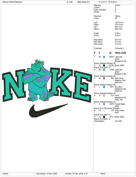 Nike Sulley Monster Embroidery Design Files - 3 Size's