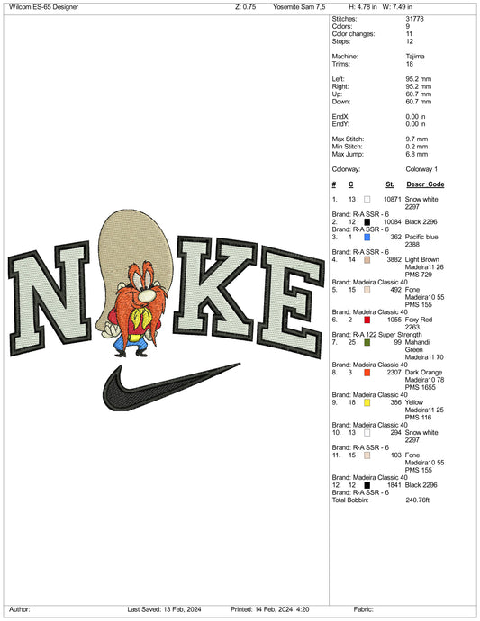 Nike Yosemite Sam Embroidery Design Files - 3 Size's