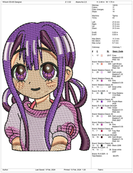 Yashiro Nene Embroidery Design Files - 3 Size's