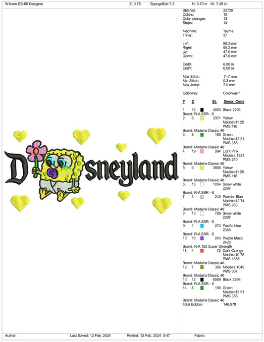 SpongeBob Disneyland Embroidery Design Files - 3 Size's