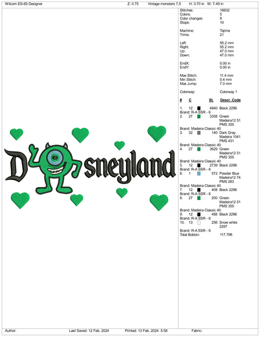 Mike Wazowski Disneyland Embroidery Design Files - 3 Size's