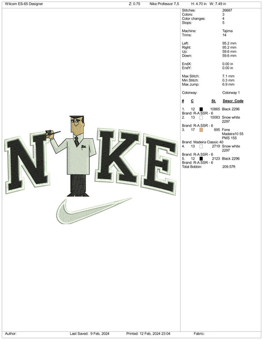 Nike Professor Utonium Embroidery Design Files - 3 Size'sRegular price $6.99 USDRegular priceUnit price / per-
