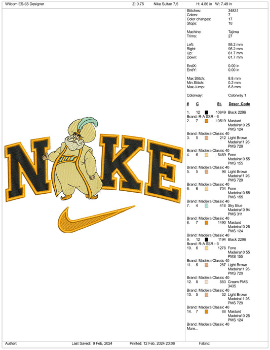 Nike Aladdin Sultan Embroidery Design Files - 3 Size'sRegular price $6.99 USDRegular priceUnit price / per-