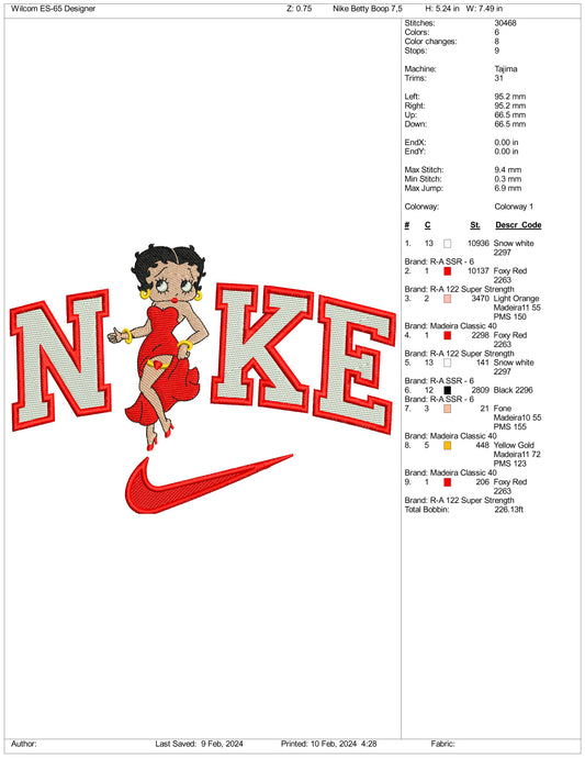 Nike Betty Boop Embroidery Design Files - 3 Size'sRegular price $6.99 USDRegular priceUnit price / per-