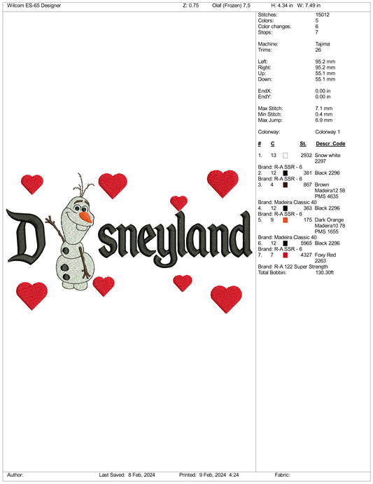 Olaf Disneyland Embroidery Design Files - 3 Size'sRegular price $6.99 USDRegular priceUnit price / per