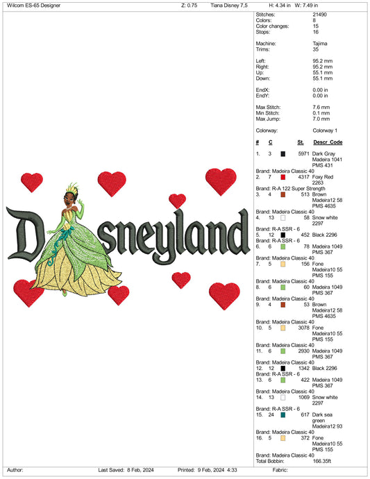 Princess Tiana Disneyland Embroidery Design Files - 3 Size'sRegular price $6.99 USDRegular priceUnit price / per-