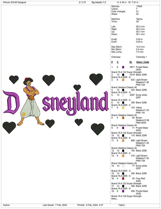 Aladdin Disneyland Embroidery Design Files - 3 Size's