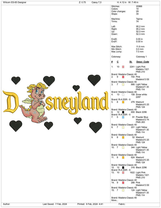 Cassie Dragon Disneyland Tales Embroidery Design Files - 3 Size's