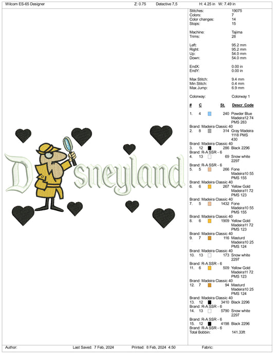 Inspector Clouseau Disneyland Embroidery Design Files - 3 Size's