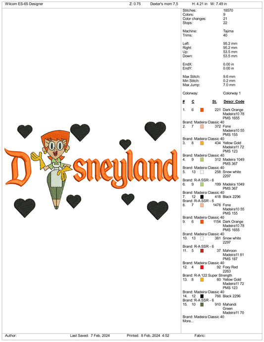 Dexter's Mum Disneyland Embroidery Design Files - 3 Size's