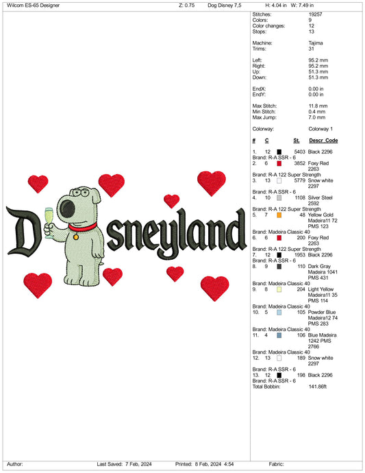 Brian Disneyland Embroidery Design Files - 3 Size's