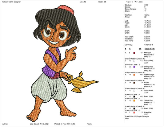 Chibi Aladdin Embroidery Design Files - 3 Size's