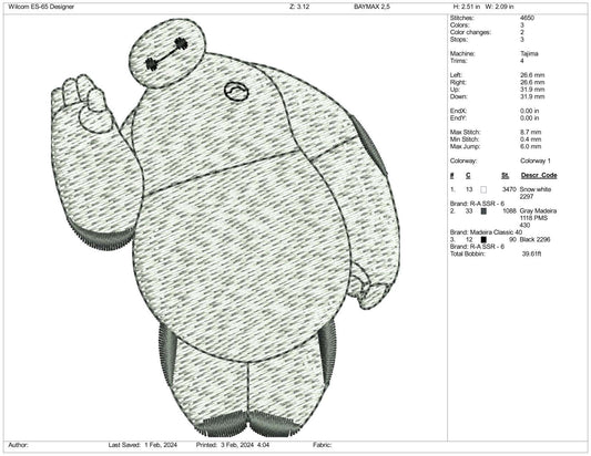 Baymax Embroidery Design Files - 3 Size's