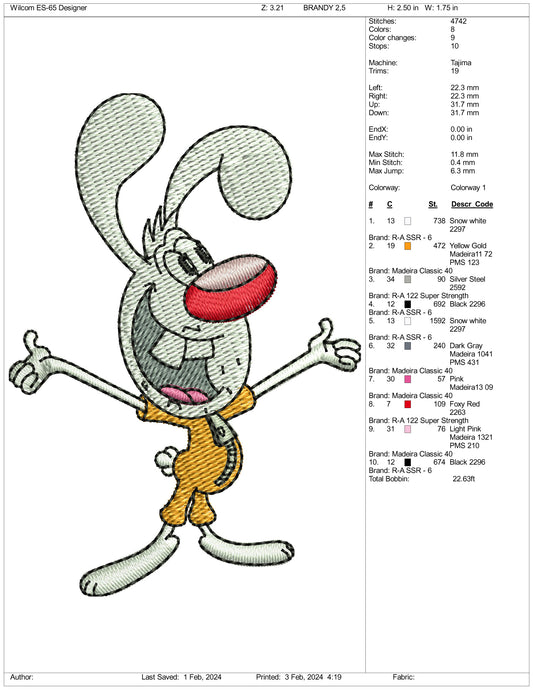 Chibi Bugs Bunny Embroidery Design Files - 3 Size's
