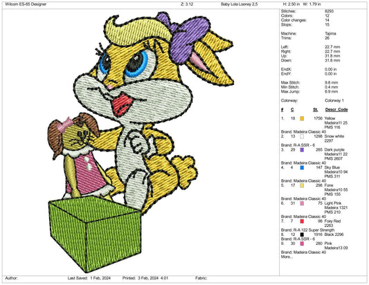 Chibi Lola Bunny Embroidery Design Files - 3 Size's